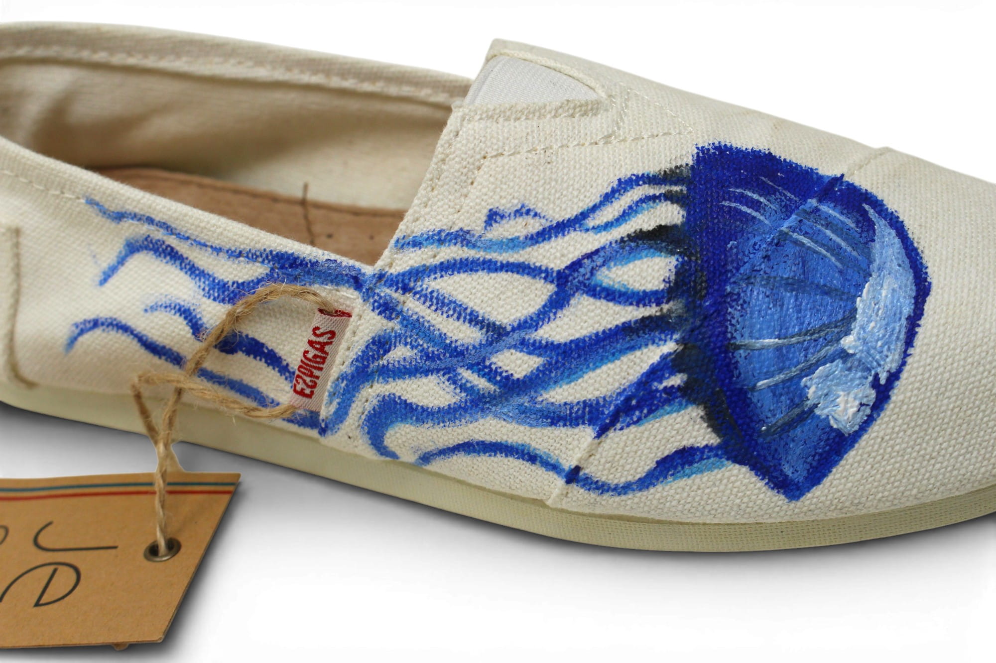 Sardines argentées, poulpes tentaculaires, méduses translucides dérivant entre deux eaux... La mer n'a jamais été aussi proche. La collection capsule ESPIGAS réunit des espadrilles et des tennis blanches peintes à la main, chacune portant en elle un fragment vivant de la Méditerranée.