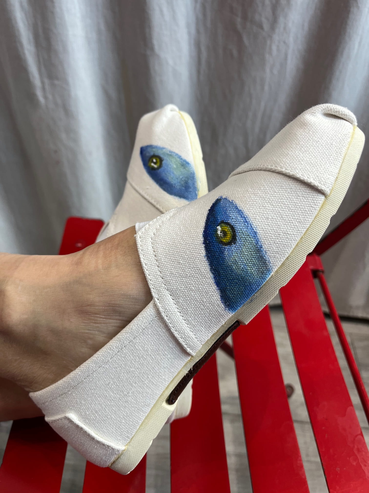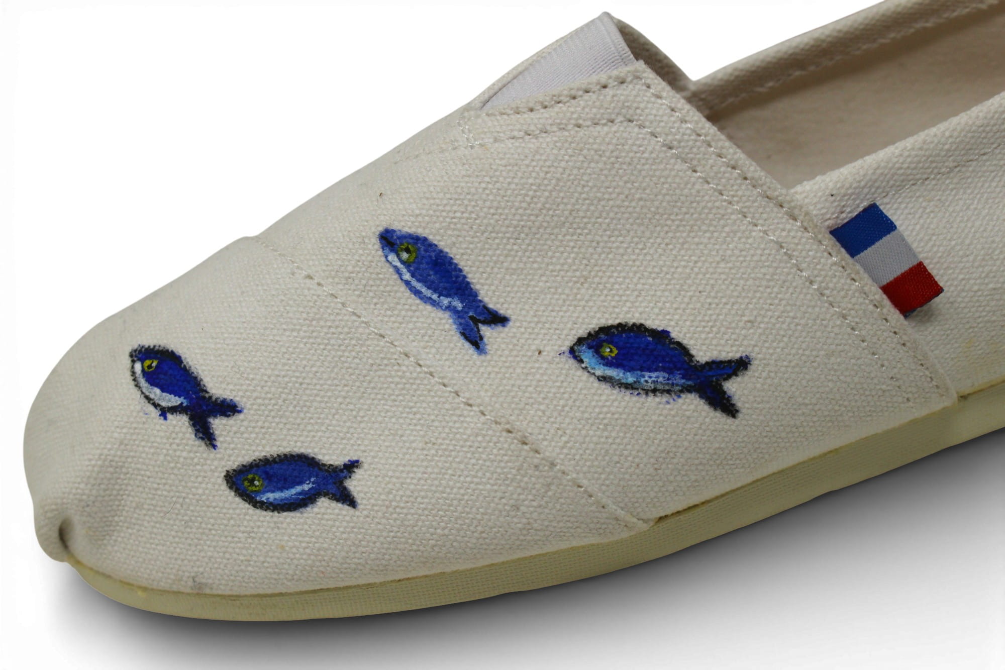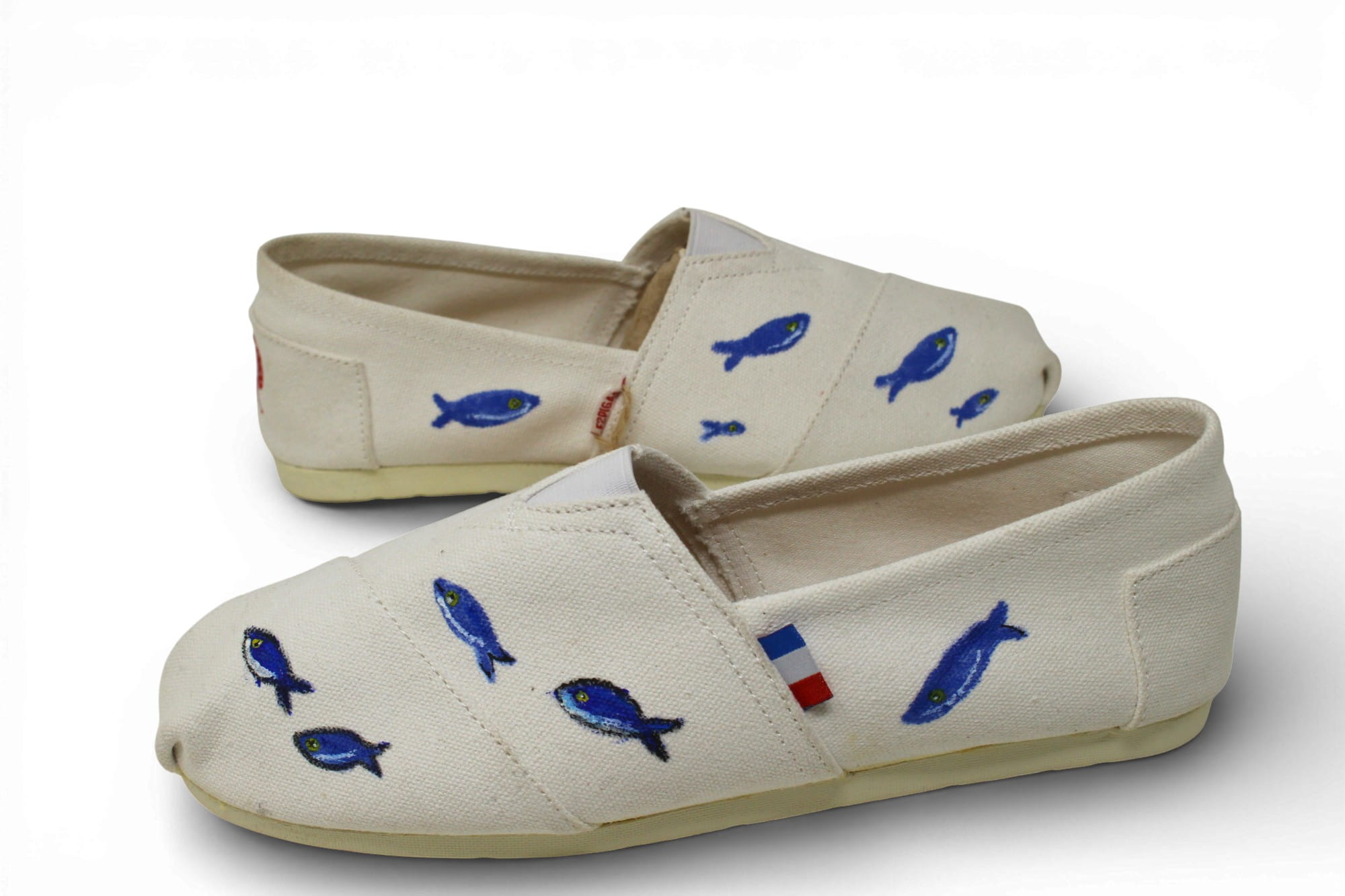Espadrille blanche peinte à la main au motif petits poisson 89€/ Edition limitée-Précommande jusqu'au 30 mars 2026