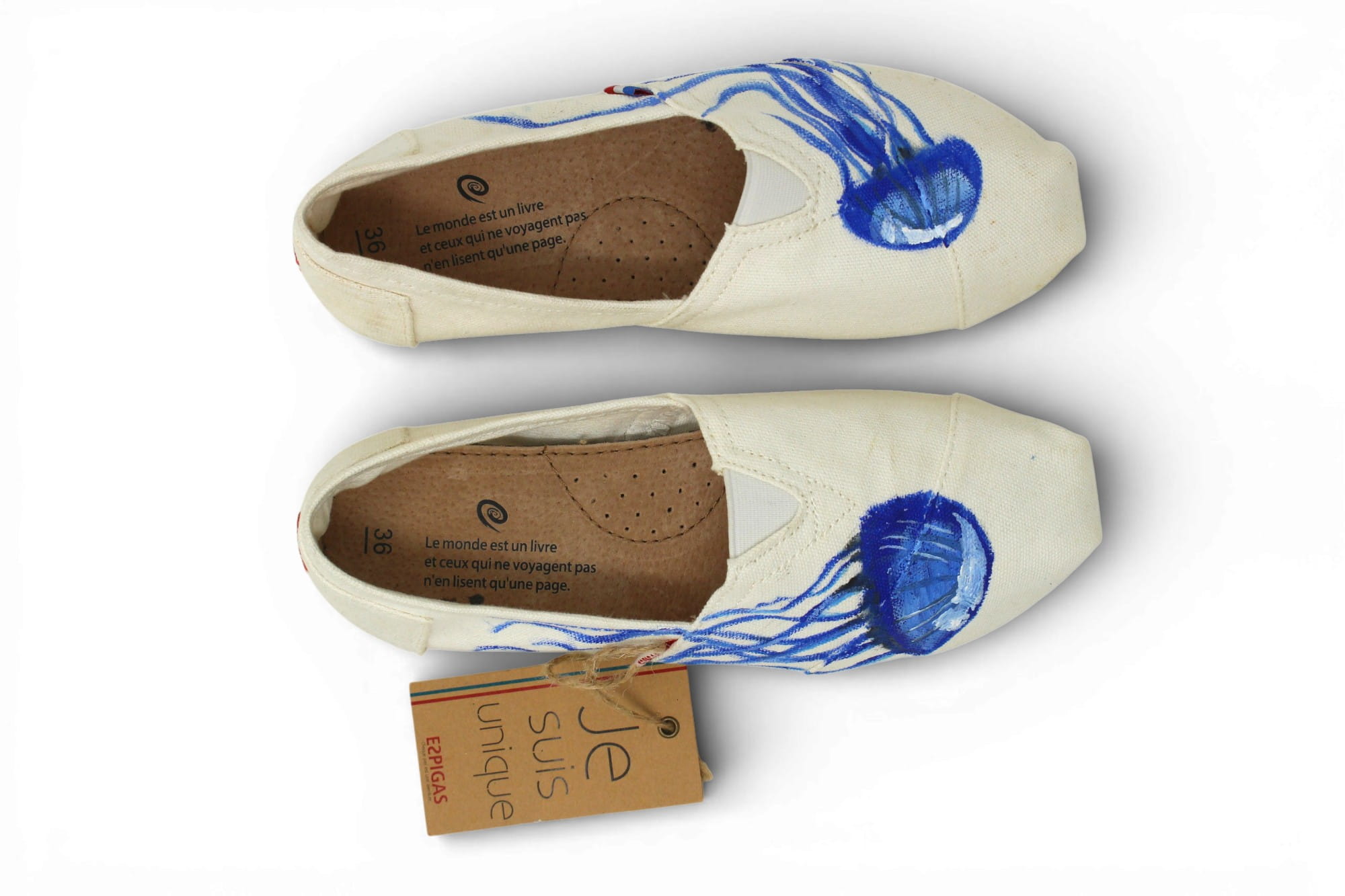 Collection capsule ESPIGAS — Espadrilles & Tennis peintes à la main. Sardines, Poulpes, Méduses. Pièces uniques, fabriquées à Marseille. Label Fabriqué à Marseille — Marques de France.
