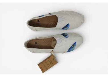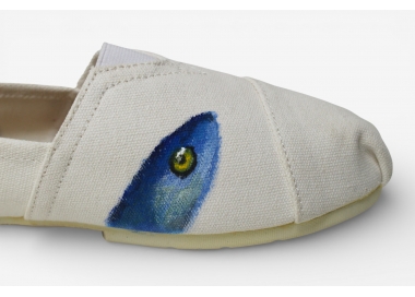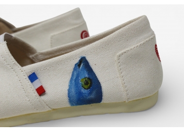 Découvrez notre espadrille blanche peinte à la main, motifs sardines — pièce maîtresse de notre collection capsule exclusive. Fabriquée dans notre atelier marseillais, chaque paire est une œuvre d'art portable, peinte à la main à l'acrylique, en hommage à l'emblème populaire et festif de Marseille : la sardine.